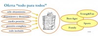 Desde un punto de vista más general, se podría decir que adaptamos los hoteles a nuevas tendencias, sumando una nueva oferta a la ya existente; si primero era el sólo alojamiento o la media pensión, luego le sumamos la pensión completa y ahora el todo incluido, en diferentes variantes si hace falta, “estándar”, “premium”,… Lo importante es no perder poder de captación de mercado. La oferta se dirige al segmento que haga falta: al cliente mayor, a la pareja, a la familia, a la clientela joven,.. y todo en el mismo establecimiento. Es el hotel “todo para todos”, cuanto más se diversifique, más poder de captación. ¿O quizás no?