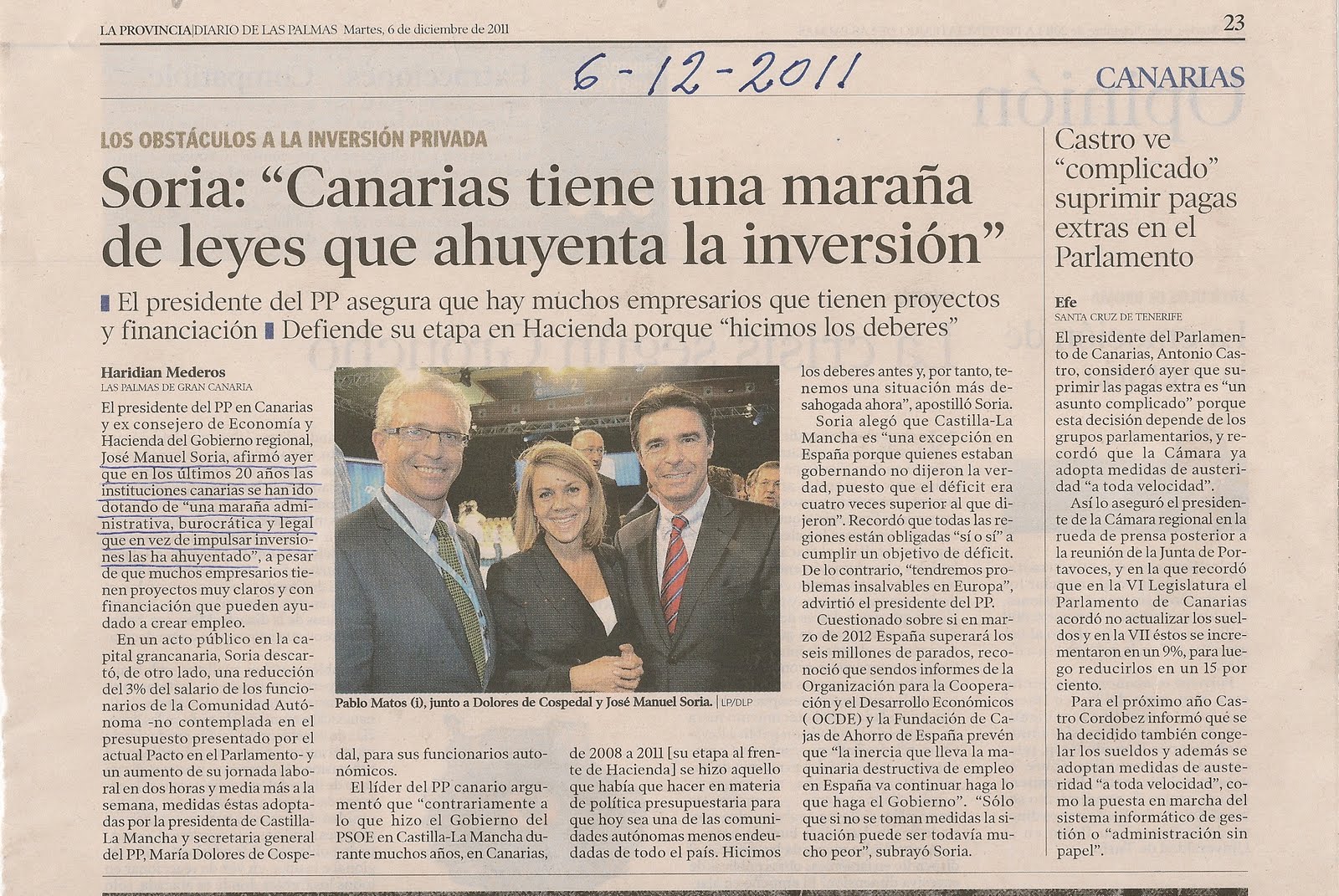 2011-12-06 ´Canarias tiene una maraña de leyes que ahuyenta la inversión´ (Soria en la provincia-dlp)