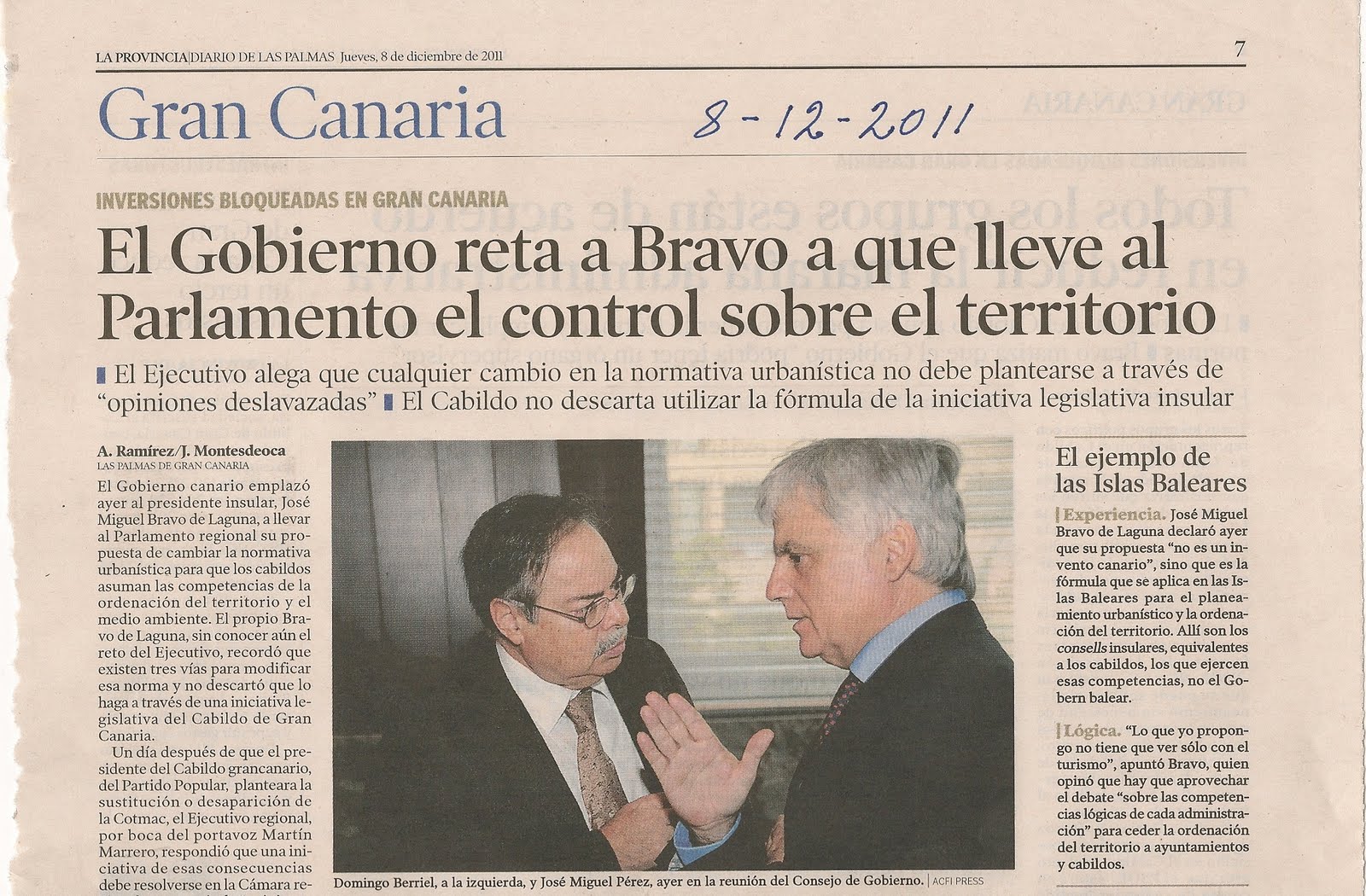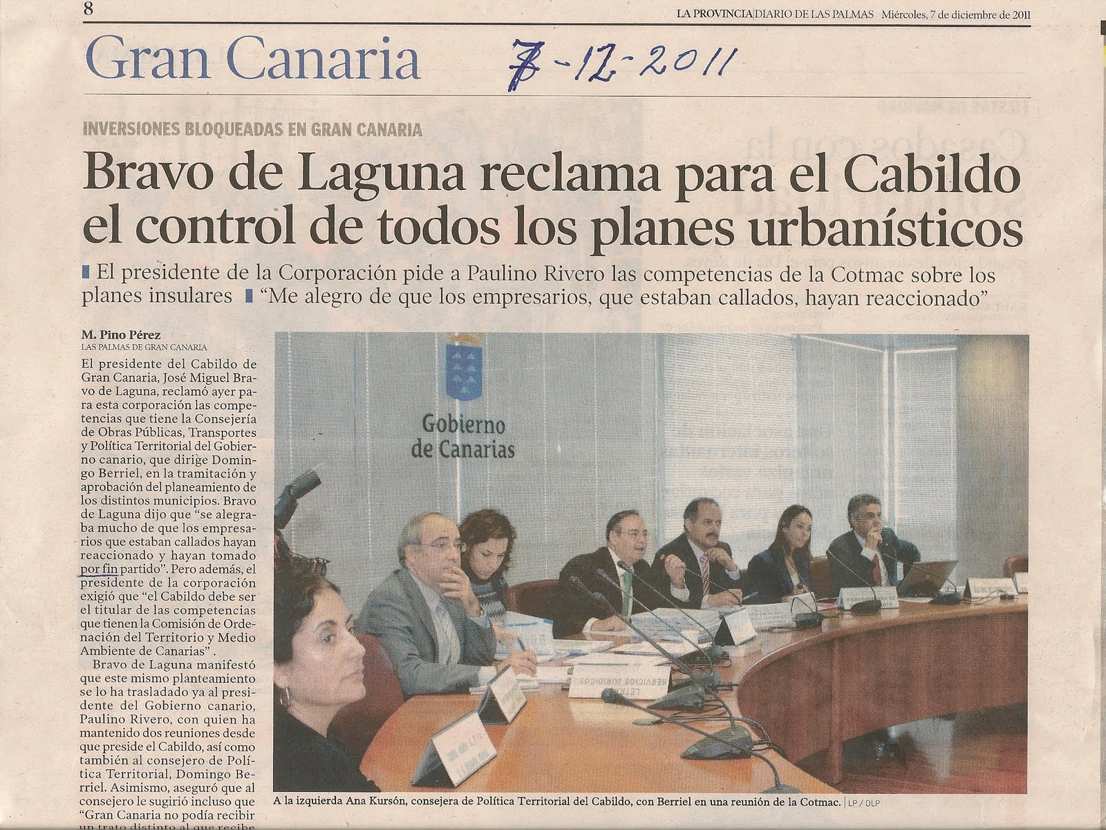 2011-12-07 El Cabildo reclama todo el poder sobre el territorio (LA PROVINCIA-DLP)