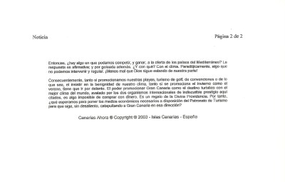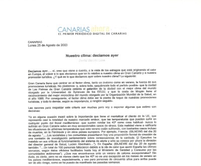 Artículo mío publicado en el CANARIASAHORA.COM el 25 de agosto de 2003 a cuento de nuestro clima que vuelve a cobrar actualidad en nuestra promoción turística.