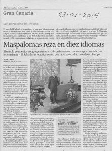 Dado la gran importancia del hecho que Gran Canaria sea el punto de reunión de tan gran muestra de confraternización cristina en su Templo Ecuménico «El Salvador» den Playa del Inglés, inserto a continuación lo publicado en el diario de papel La Provincia/DLP en el citado día 23, cuya información es de lo más ilustrativa sobre el evento.