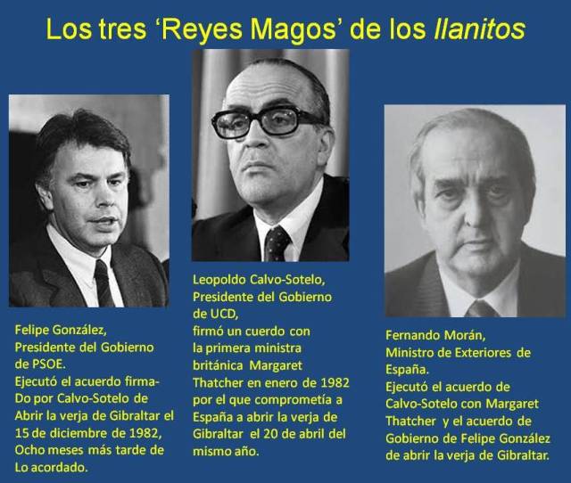 La apertura de la verja de Gibraltar fue acordada por Leopoldo Calvo-Sotelo, siendo presidente del Gobierno de UCD, con la primera ministra británica Margaret Thatcher en enero de 1982, debiendo materializarse la apertura el 20 de abril del mismo año.