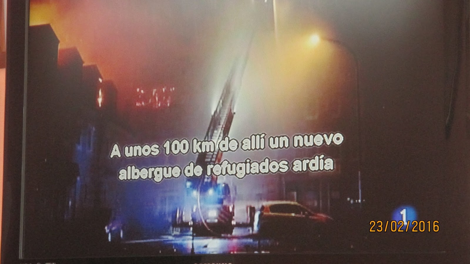 2016-02-23 A cien Kms. de allí es incendiado un albergue para refugiados.