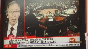 2016-02-25 Reunión de los ministros de Interior de la UE para alcanzar un acuerdo sobre los refugiados. No hubo acuerdo pero sí una confrontación de Austria con Grecia a la que culpa de descontrol en sus fronteras. (Las fronteras de Grecia con Turquía es el mar Egeo)